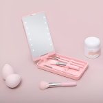 Seti i furçave dhe pasqyra me LED përshtaten perfekt në çantën tuaj, kështu që mund të përmirësoni grimin tuaj me lehtësi kudo që ju çon dita.